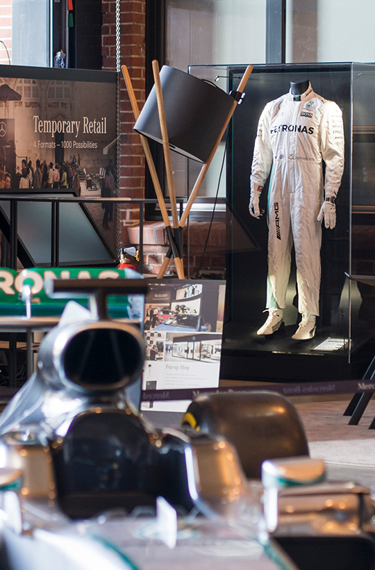 True Champions – Um mit der Präsentation der Mercedes-AMG Petronas Motorsport Accessoires Reihe einem wahren Champion gerecht zu werden, entwickelt AMT ein äußerst flexibles und sehr hochwertiges Displaykonzept.