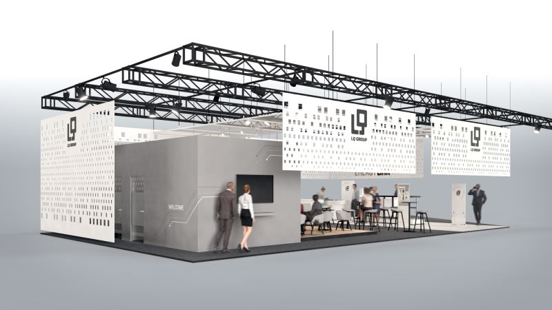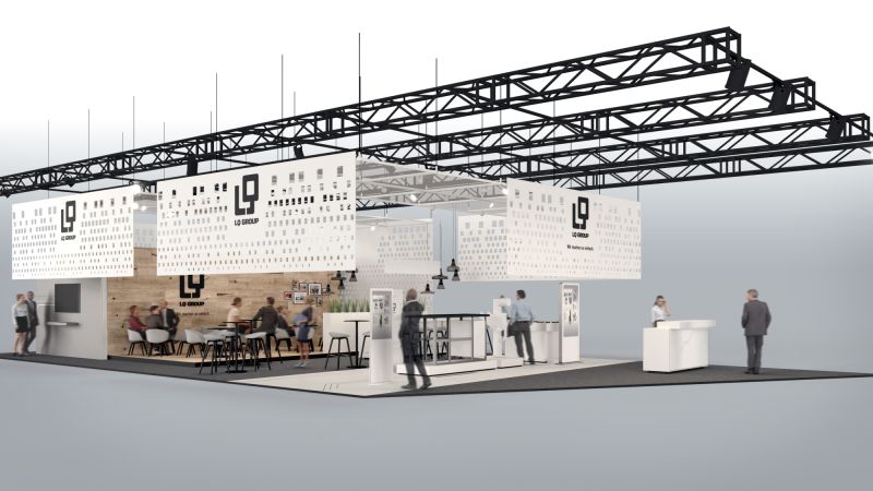Der BITSHOWER als raumgreifende Fassade abgeleitet aus den Bits und Bytes, die durch Datenleitungen der von LQ gefertigten Kabel fließen. Modern, offen, transparent und gestaltend, umspannt die Fassade den Messestand. Im Inneren des Standes präsentiert sich LQ modern und digital, alle Exponate werden auf digitalen Elementen erklärt und in der Anwendung gezeigt.